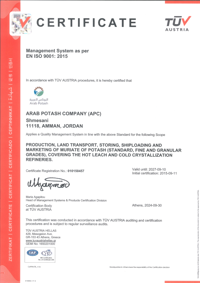 • APC remained dedicated to implementing a thorough quality management system and has once again achieved certification in compliance with the ISO 9001:2015 standards.