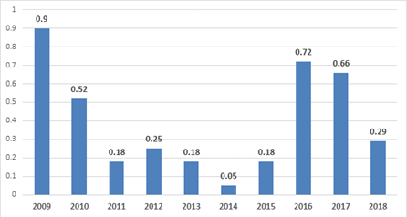 APC provide supportive environment and sufficient resources to all management levels to address all hazards in their workplaces, evaluate their risks and apply all possible control actions to prevent safety incidents and occupational health illness from occurrence. APC adopt Occupational Health and Safety (OH&S) practical tools including and not restricted to supervisory programs, employee involvement, Safety meetings and Toolbox Talks, safety incentives and promotions, work safety permits, safety engineering, emergency readiness, road safety, contractors' safety induction and monitoring, process safety, safety coaching…etc. following figure shows the annual lost Time Injury Frequency rates of accidents.